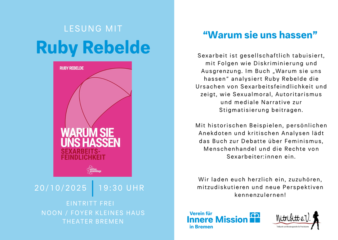 - Ebenso die Aktivist*innen von Voices4sexworker haben nützliche, bundesweite Informationen für Sexarbeiter*innen erarbeitet und aktualisieren diese ständig.